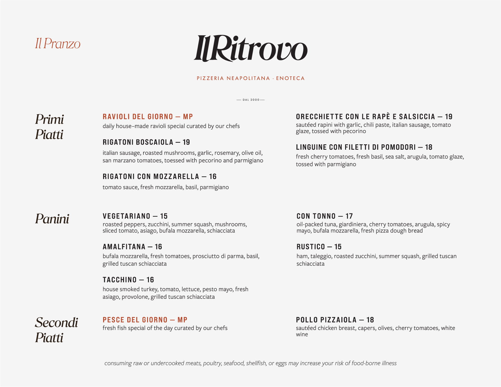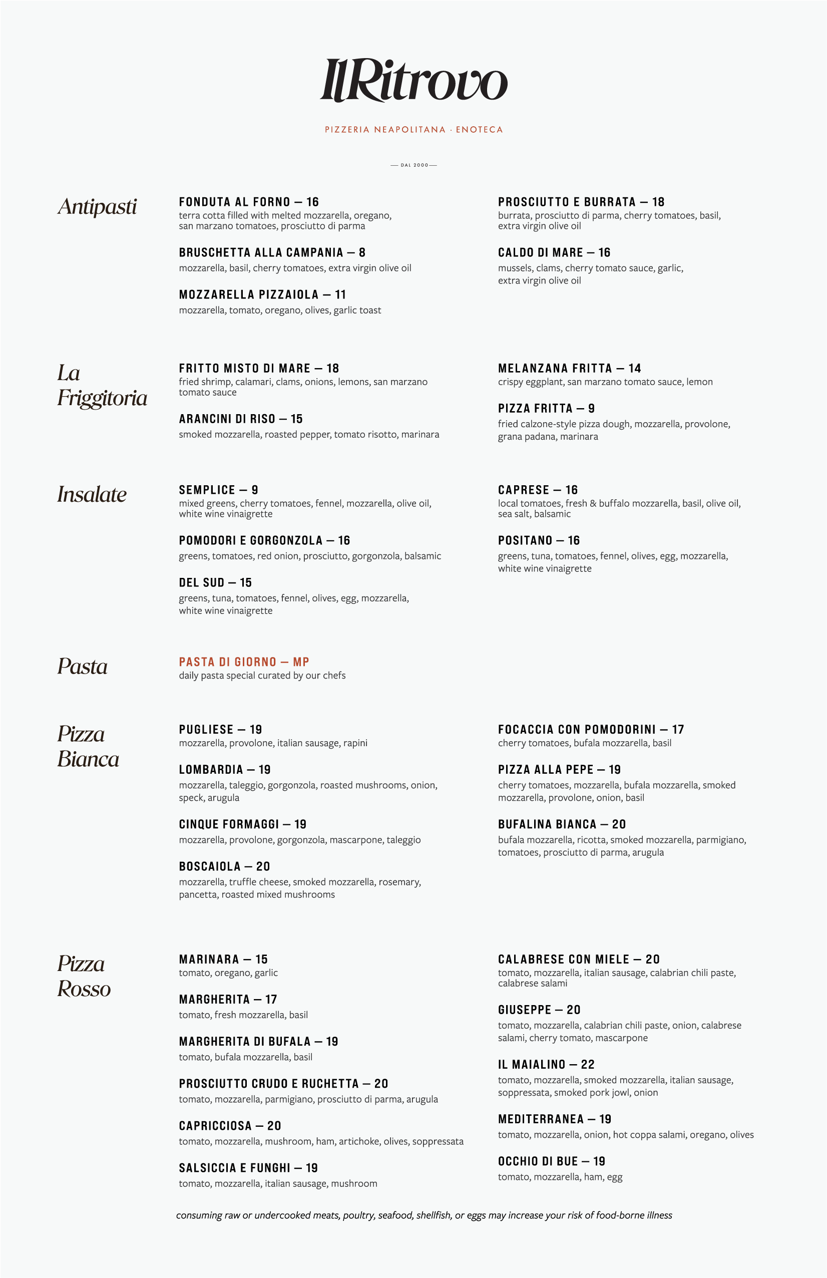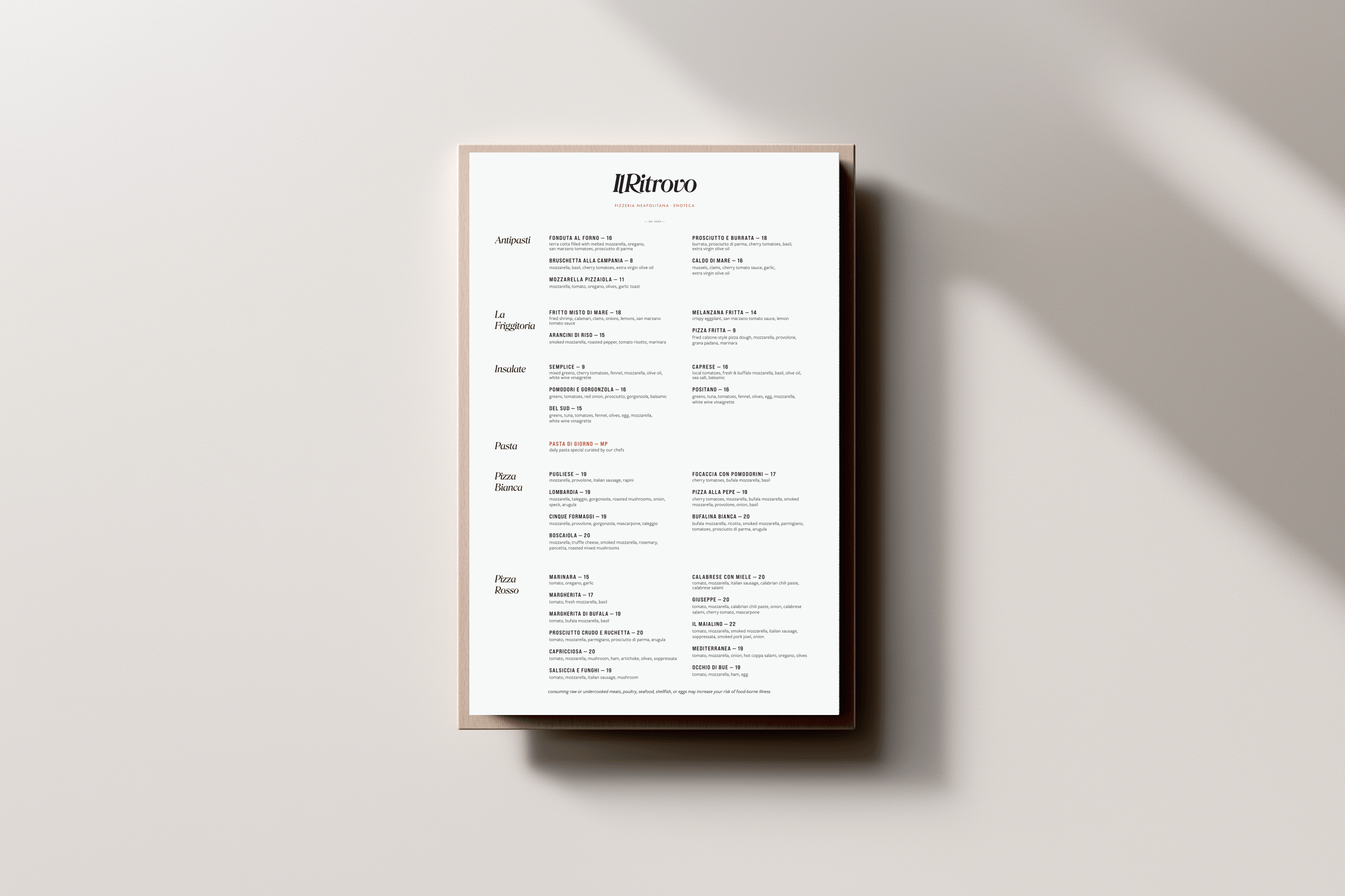 Il Ritrovo is a long-standing Neapolitan pizzeria in Sheboygan, Wisconsin, known for its authenticity and deep community roots. However, its menu had become visually dense, inconsistent, and difficult to navigate—diminishing both the food and the guest experience.